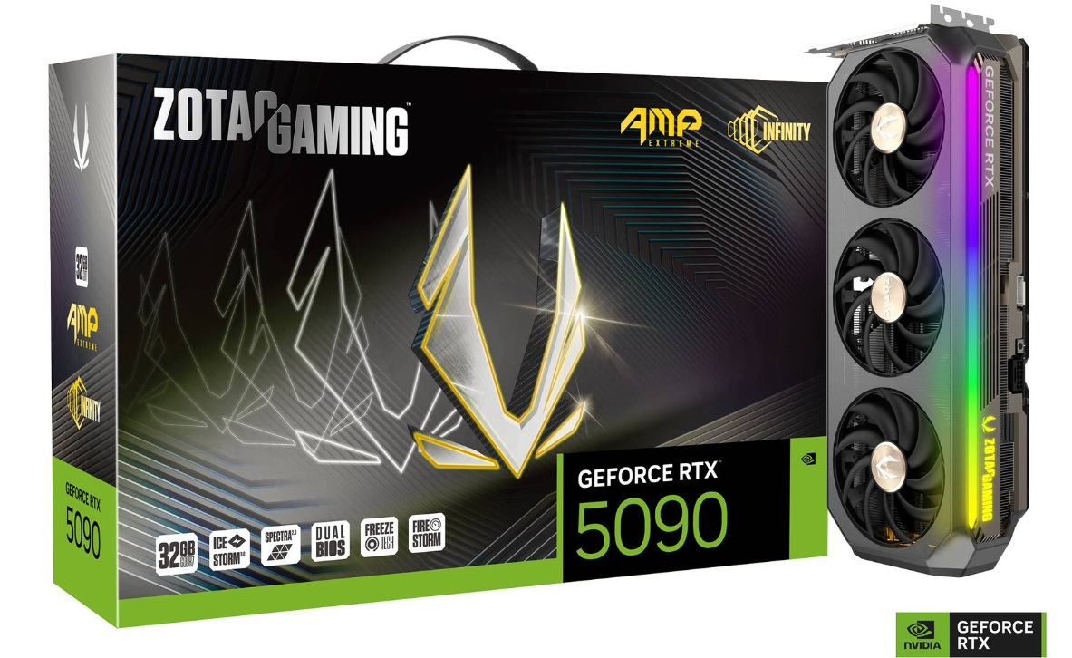 В отличие от карты, показанной Дженсеном Хуангом во время выступления на CES 2025, каждый вариант от Zotac имеет 3 вентилятора BladeLink размером 100 мм, а также поддерживает третье поколение IceStorm Advanced Cooling и испарительную камеру, увеличенную на 34% по сравнению с аналогами серии RTX 40.