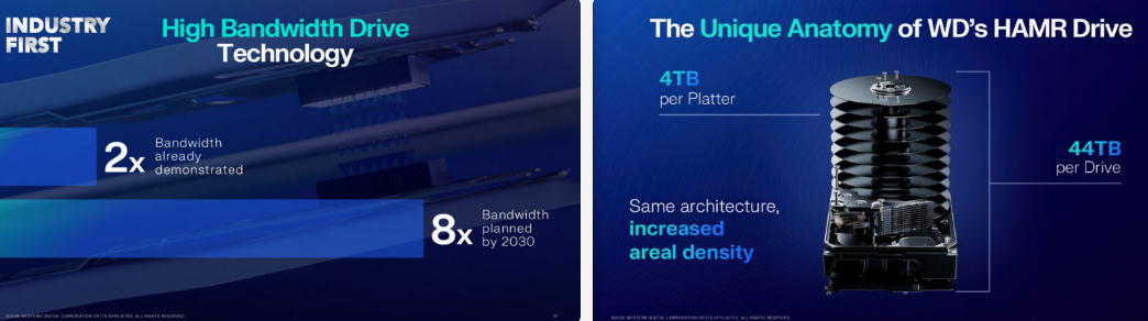 К 2029 году WD по-прежнему нацелена на достижение 100 ТБ для технологии HAMR (Heat-Assisted Magnetic Recording). Для того чтобы понять какой это объем, можно отметить, что все игры Call of Duty занимают чуть меньше 2 ТБ. Таким образом, объема 100 ТБ будет достаточно, чтобы хранить все игры COD 50 раз.