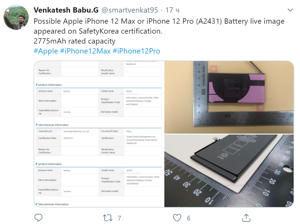 Ниже приведены значения емкости аккумуляторов, ожидаемых для четырех моделей серии iPhone 12: