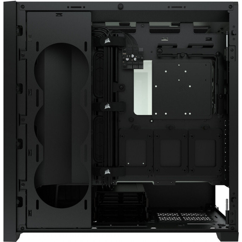 Внутри 5000D и 5000D Airflow имеют обычную горизонтально разделенную компоновку. Верхняя часть предназначена для установки материнской платы и Позволяет разместить на ней видеокарты длиной до 42 0 мм и процессорных кулеров высотой до 170 мм. На задней панели корпусов располагаются 7 слотов для карт расширения. В корпусе есть возможность разместить три 120-миллиметровых или два 140-миллиметровых вентилятора на передней панели, сверху над материнской платой пользователь также может установить три 120-миллиметровых вентилятора или два 140-миллиметровых вентилятора и есть еще места для трех 120-миллиметровых вентиляторов вдоль плоскости лотка материнской платы. В комплект входят два 120-миллиметровых вентилятора (один на вдув, один на выдув) и 6-портовый концентратор вентилятора с ШИМ.