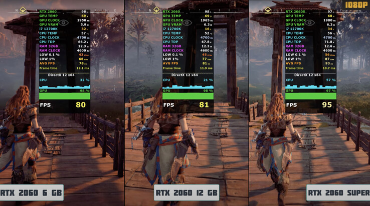 Теоретически RTX 2060 12 ГБ является известной всем RTX 2060 SUPER с большим объемом видеопамяти, но работающей на более узкой шине памяти. В целом видео от Benchmark Lab показывает, что RTX 2060 12 ГБ ближе по производительности к оригинальной RTX 2060, чем RTX 2060 SUPER. Новая карта почти на 20% отстает от RTX 2060 SUPER в некоторых играх, например, Horizon Zero Dawn.