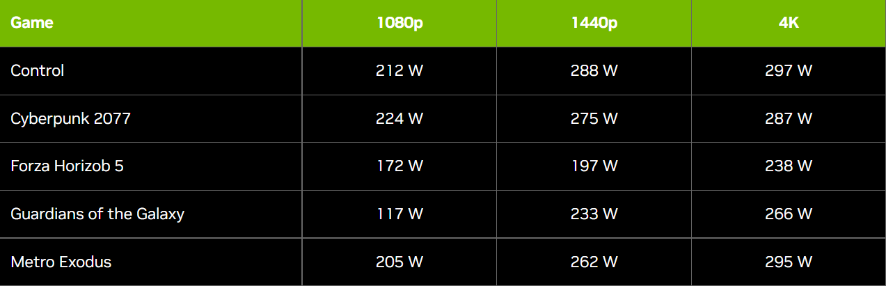 Напомню, что RTX 4080 имеет 9728 ядер CUDA, 16 ГБ памяти стандарта GDDR6X и уровень TGP 320 Вт. Это максимальное целевое значение мощности, которое обычно не достигается ни в каких игровых тестах. Более того, компания предоставила свои собственные оценочные данные, указывающие на то, что в среднем в играх, протестированных в разрешении 4K, мощность видеокарты не превышает 297 Вт.