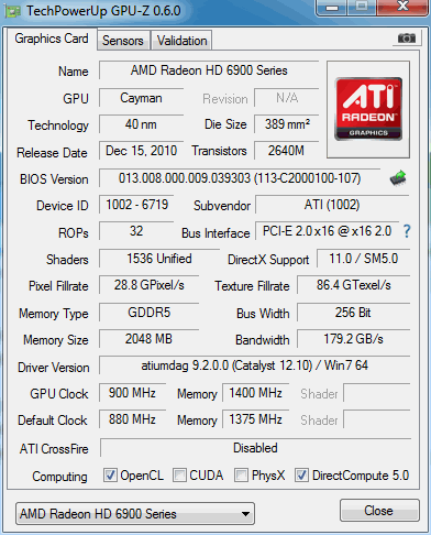 ПО: Windows 7 Ultimate 64 Bit SP1, MSI Afterburner, последние обновления для DX, NetFramework, Visual Studio. Драйвера для GPU – AMD Catalyst 12.10.