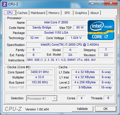 Процессор: Core i7 2600 3.4 Ghz, 4-Core, 8-Threat до 3800МГц в TurboBoost;