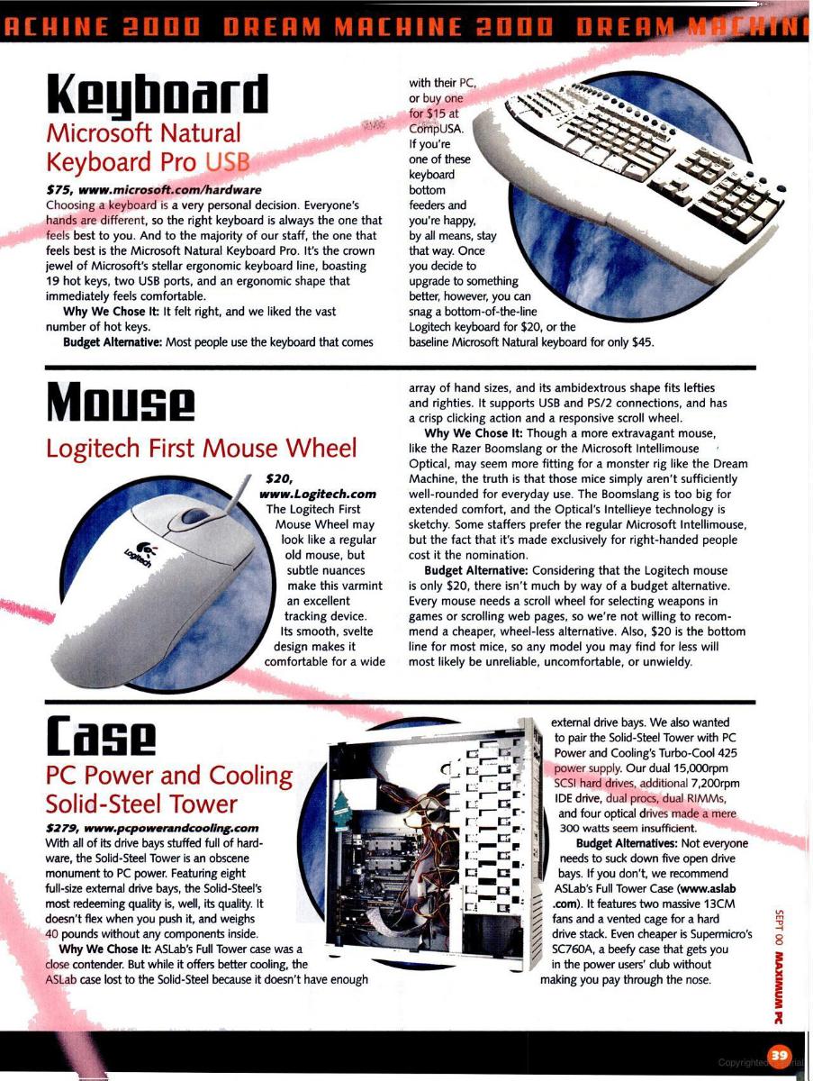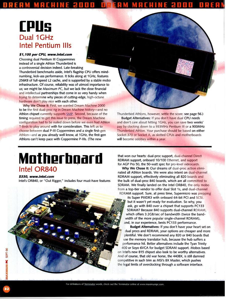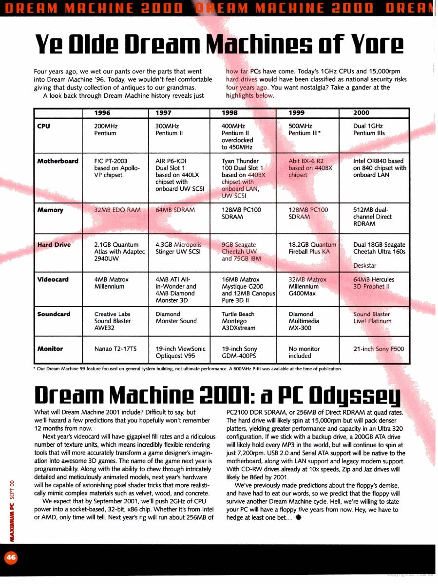 Итак журнал Maximum PC в своем сентябрьском выпуске опубликовал свою версию конфигурации "компьютера мечты 2000".