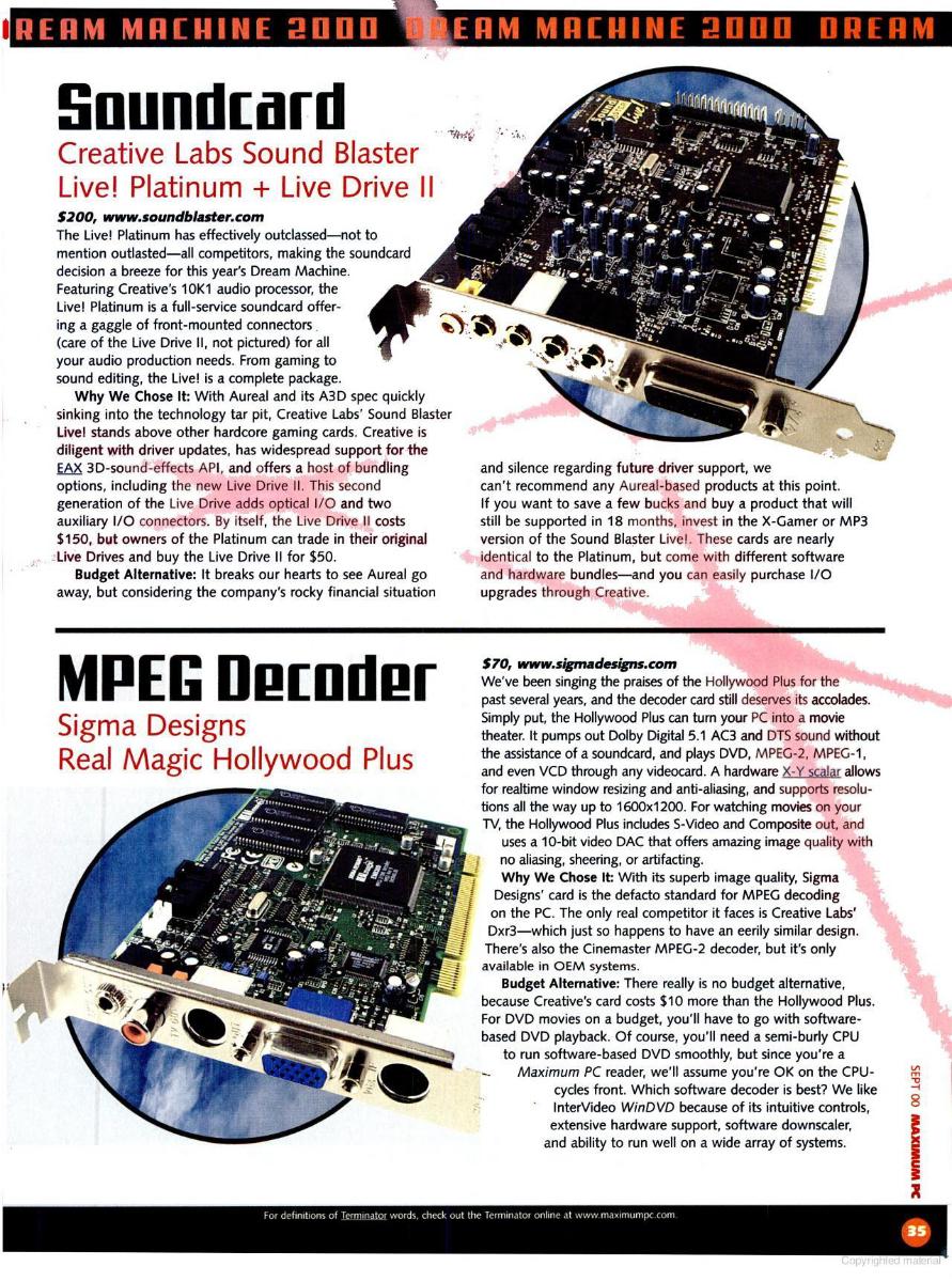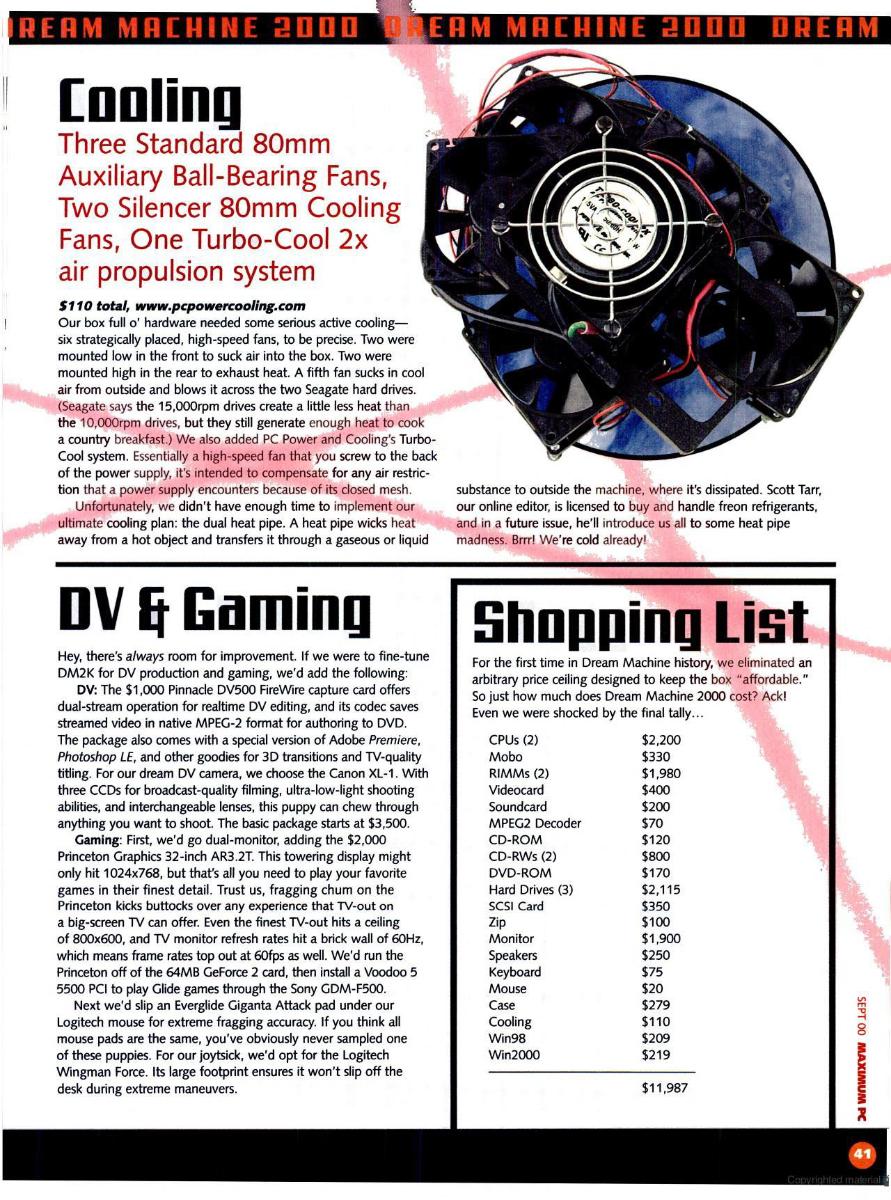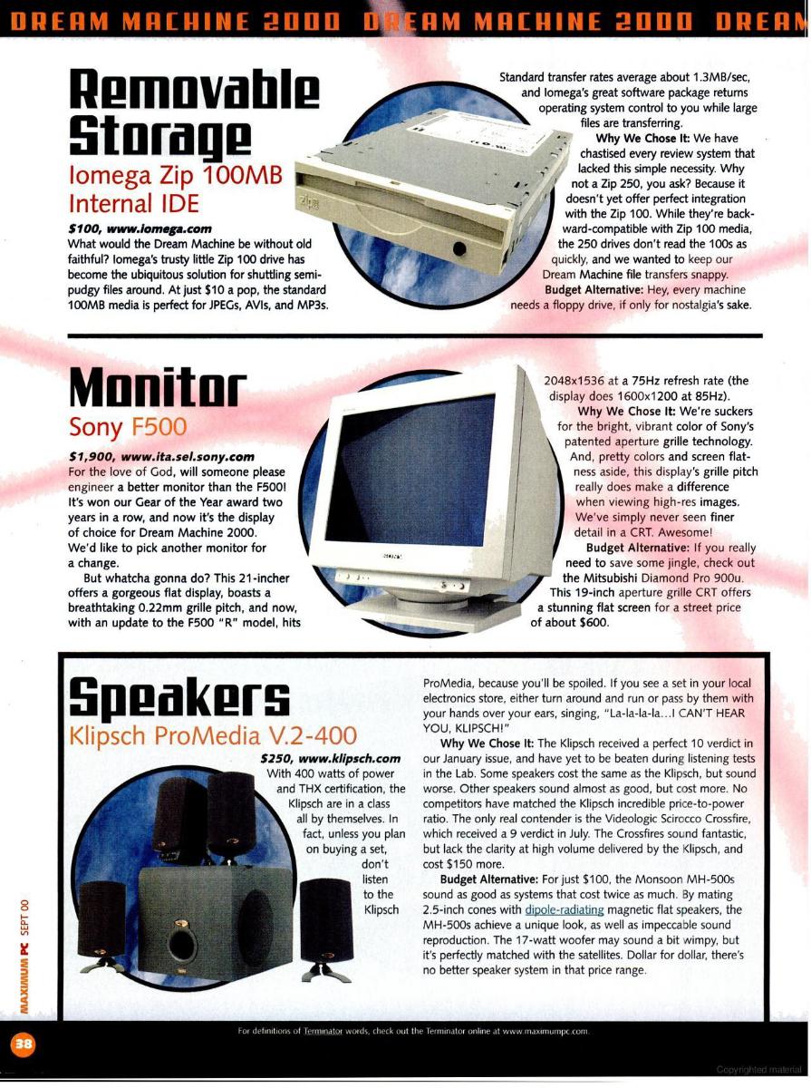 Итак журнал Maximum PC в своем сентябрьском выпуске опубликовал свою версию конфигурации "компьютера мечты 2000".