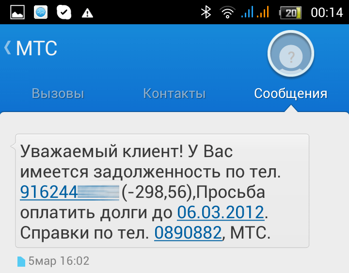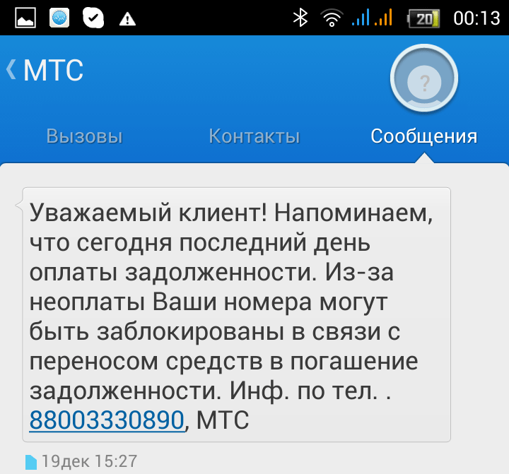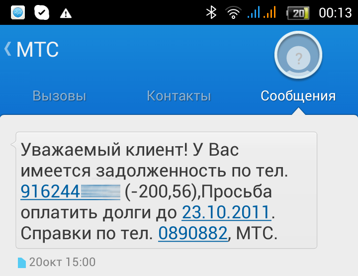 В общем, данное сообщение я проигнорил, т.к. о существовании данного номера я уже не помнил, а подобные сообщения о якобы всяких задолженностях приходили регулярно.