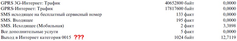 Ирония в заключается в том, что это было списания за услугу а-ля бит, при этом сам интернет при отрицательном балансе не работает (об этом ещё будет ниже). Вот похожая история.