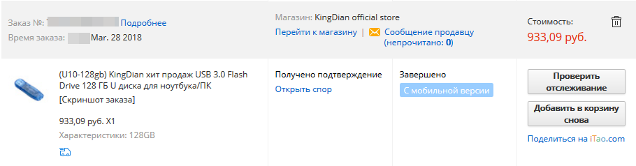 В дни очередной "пcевдо-распродажи" я очень тщательно выбирал реально интересные лоты. Среди них оказалась флешка KingDian на 128 Гб USB 3.0 за ~950 рублей.