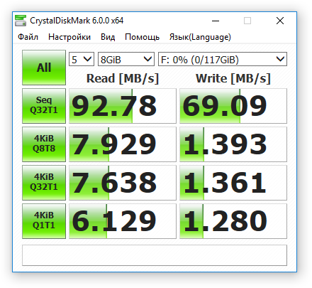 Результат хороший! Стоит отметить, что в работе флешка практически не греется.