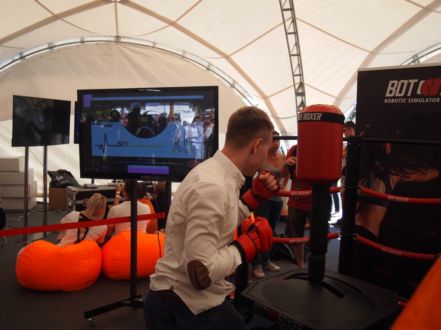 Интерактивная боксерская груша в зоне Декомпиляция была одним из самых посещаемых местных "аттракционов"