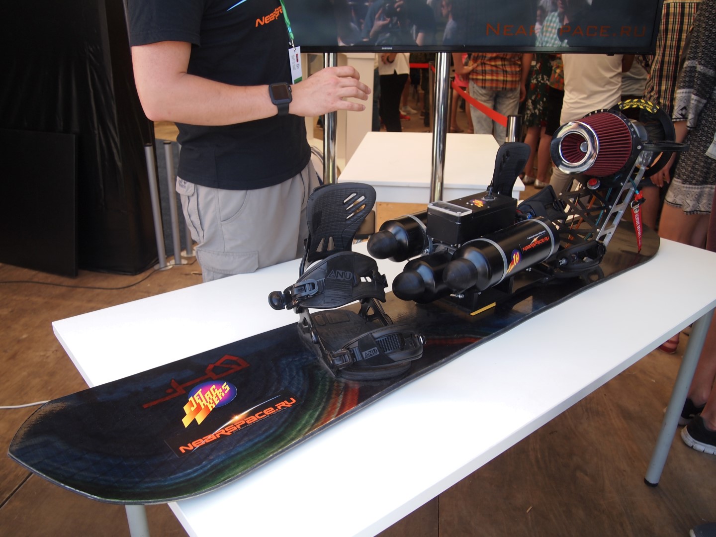 ...и сноуборд с реактивным двигателем там же