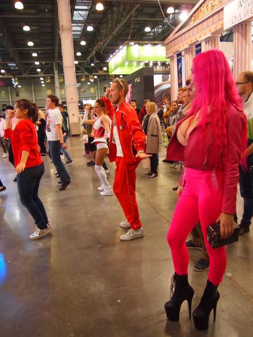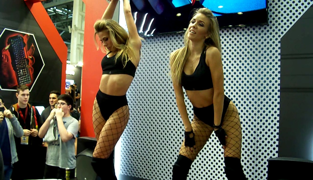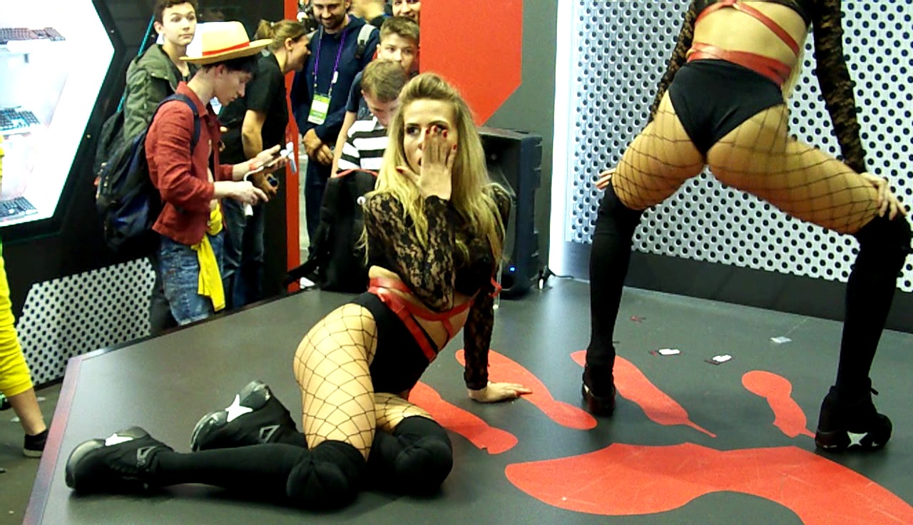 А на стенде Bloody девушки зажигали публику своими танцами go-go. Там же каждый час проходил аттракцион неслыханной щедрости - среди присутствующих при помощи лототрона разыгрывали ценные призы, включая новые механические клавиатуры с оптическими переключателями B820R. Автору этих строк досталась одна из них, потом сделаю как-нибудь на неё подробный обзор. Но у нас тут пост не о клавиатурах, а о девушках.