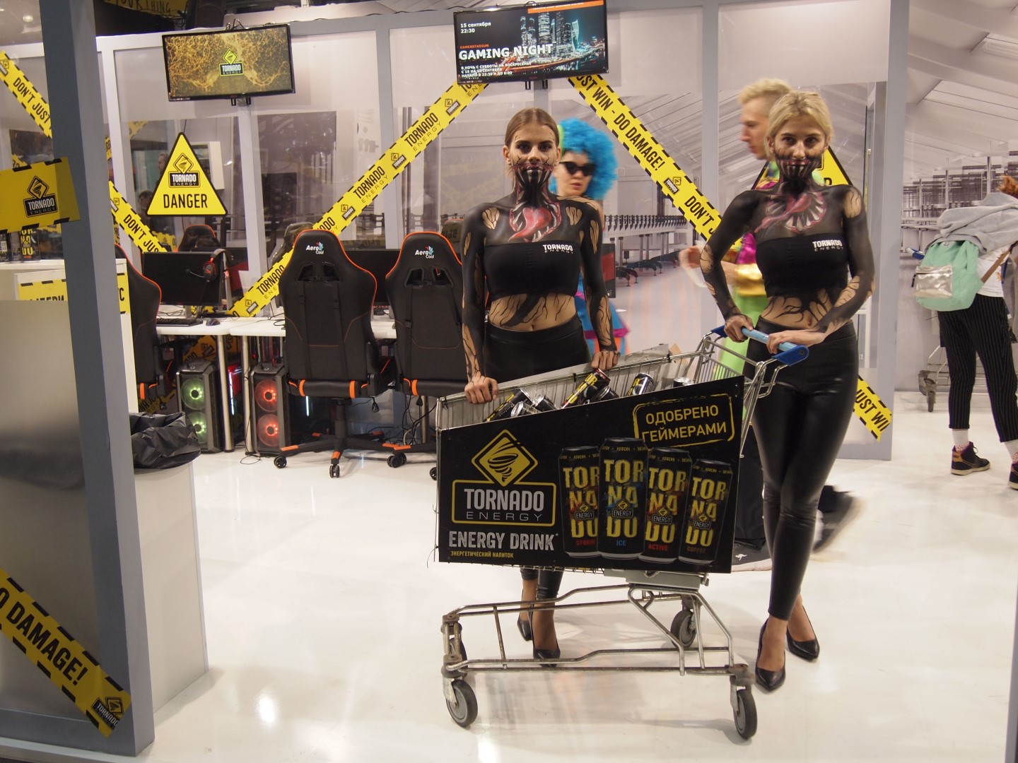От косплееров в яркости своих образов не отставали и девушки со стендов различных компаний и Tornado Energy, чей стенд был оформлен в стилистике лаборатории и посвящен фильму Веном.