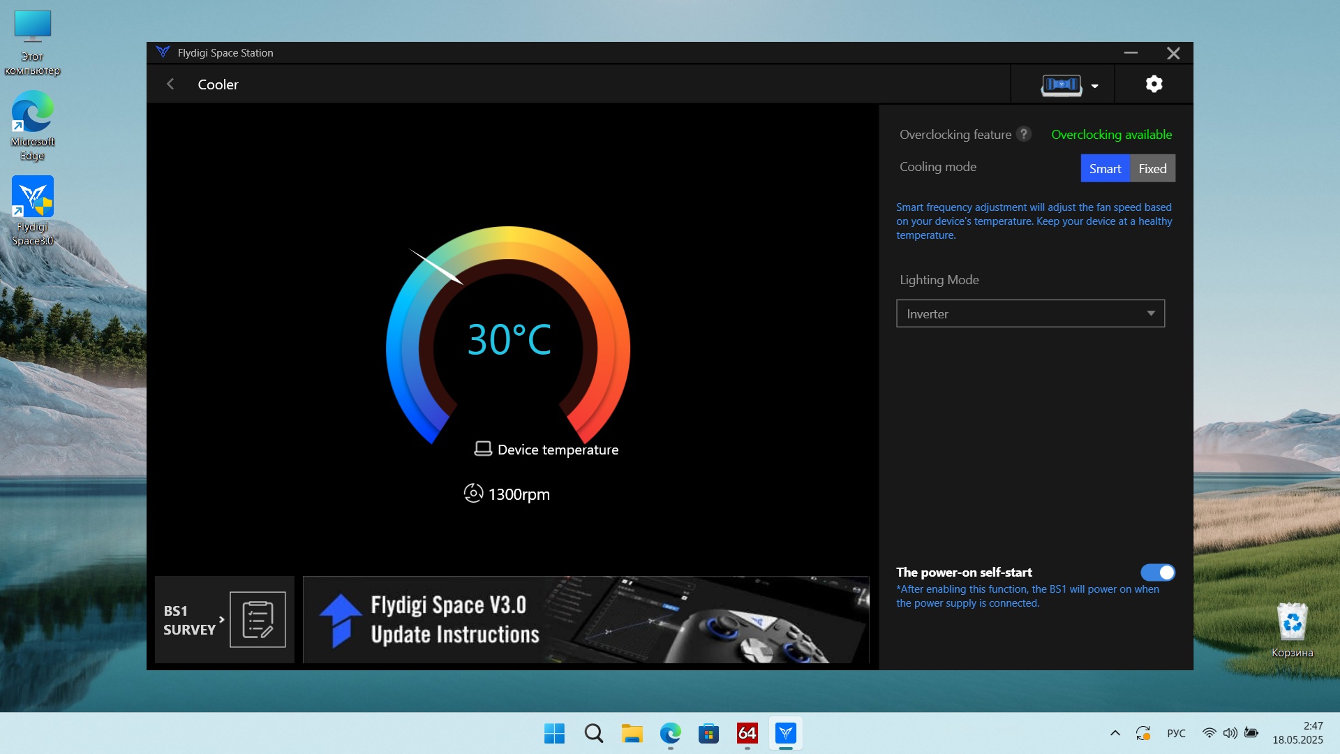 Впереди – жаркое московское лето и посиделки на балконе с ноутбуком, система охлаждения которого явно сходит с ума от такой нагрузки, едва успевая прокачивать поток и без того хорошо прогретого воздуха. Обычно в таком случае на помощь приходила дешевенькая охлаждающая подставка из выгнутого металлического листа с тремя установленными на ней вентиляторами, создающая зазор между нижней поверхностью ноутбука и столом и увеличивающая приток воздуха. Но в этом году я решил пойти дальше, достав более производительное решение в виде охлаждающей платформы Flydigi BS1, созданной с расчётом на игровые ноутбуки. Это не только производительное, но и умное решение: подставка связывается с ноутбуком по Bluetooth, где через фирменное программное обеспечение можно выбрать режим работы, в том числе, автоматическую регулировку оборотов вентилятора подставки в зависимости от температуры процессора. На старте продаж подставка Flydigi BS1 стоила каких-то неприличных для подобного девайса денег, сейчас же цена вопроса опустилась до приемлемых 5000-6000 рублей на российских маркетплейсах.