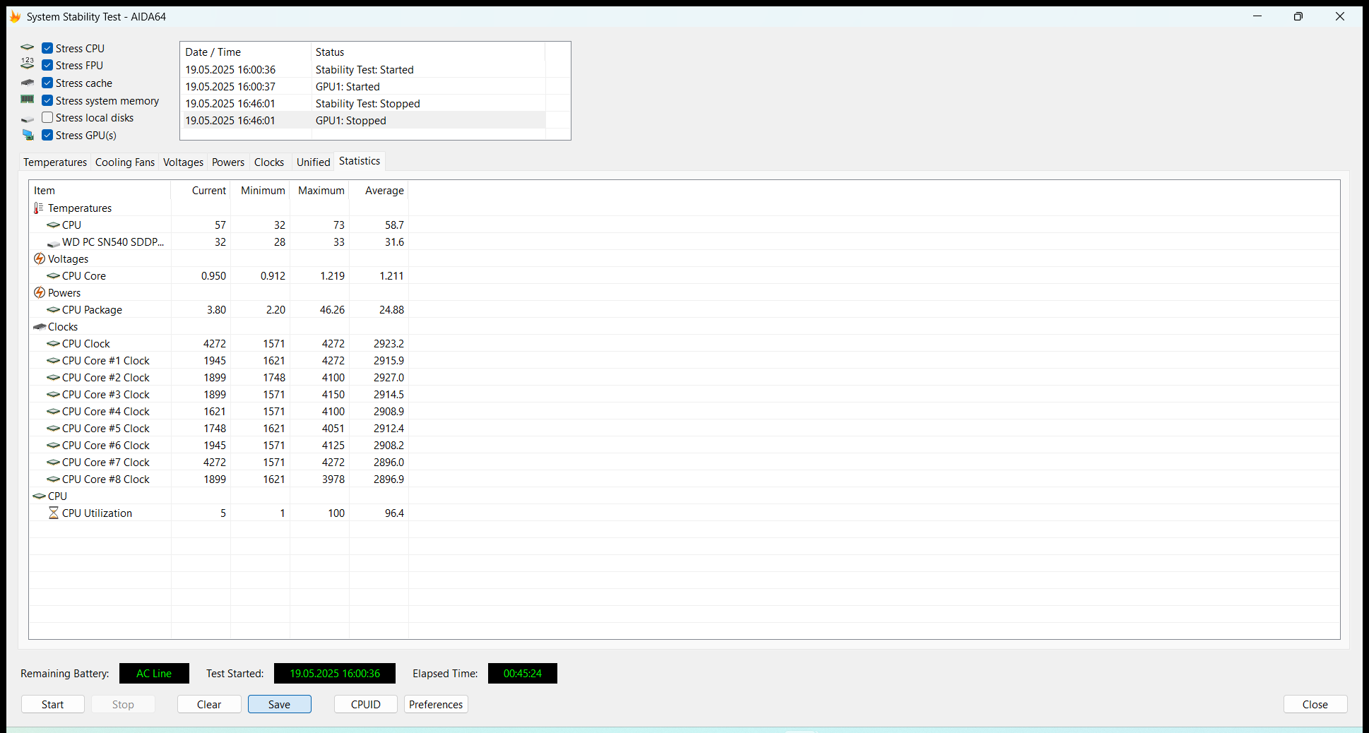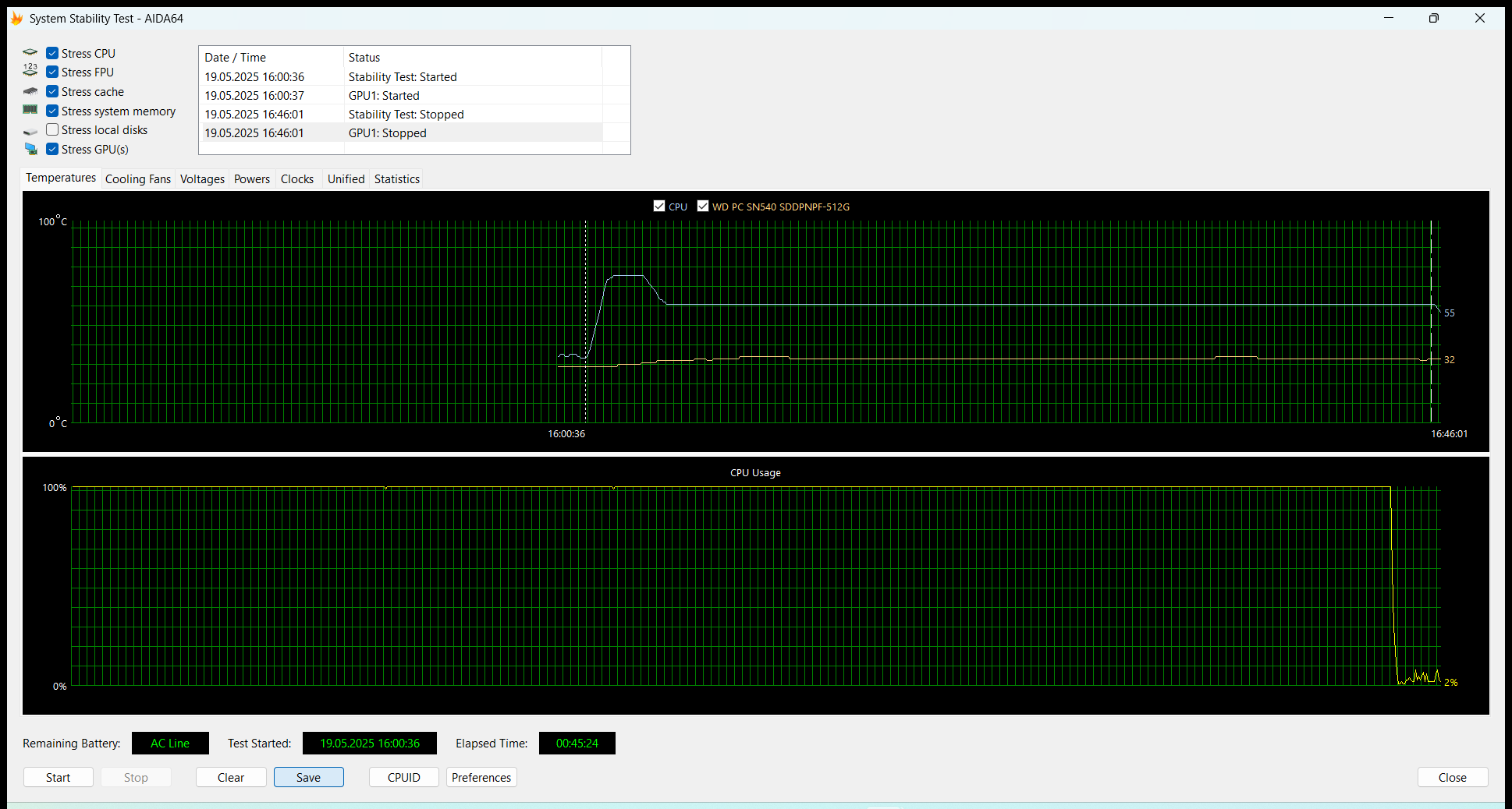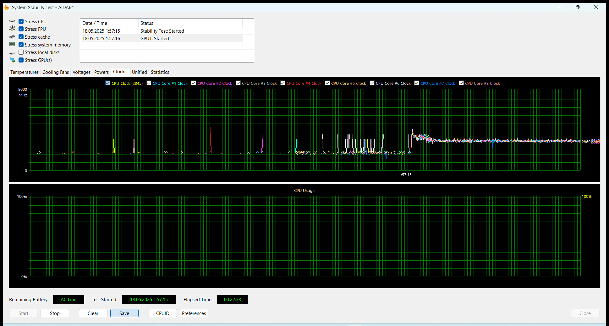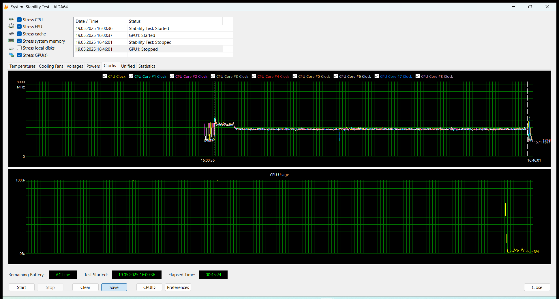 Теперь можно посмотреть, какой результат при запуске стресс-теста будут давать различные устанавливаемые вручную режимы с постоянной скоростью вращения вентилятора.