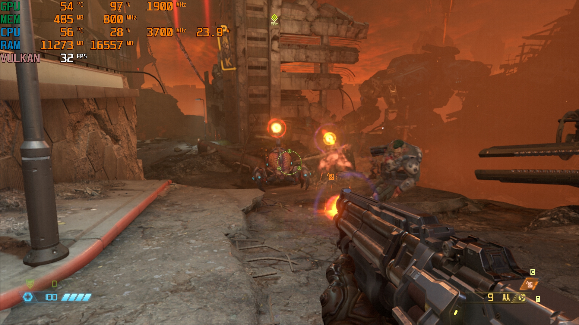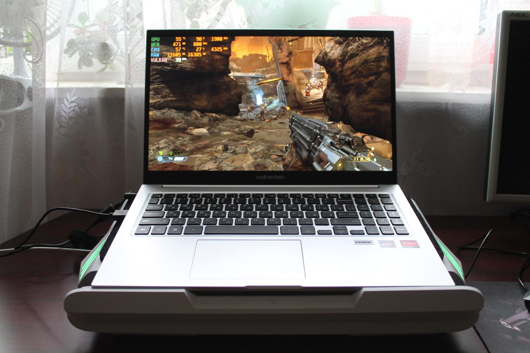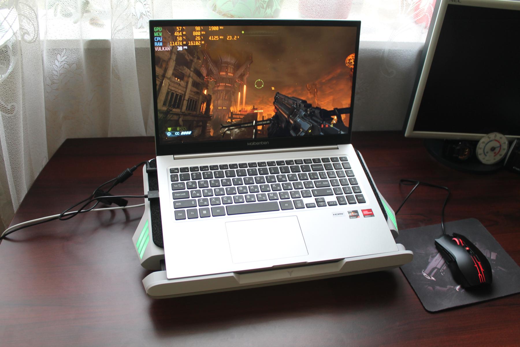С тестами в условиях искусственно созданной нагрузки мы разобрались, а теперь посмотрим, как охлаждающая подставка Flydigi BS1 поможет нам снижать температуру процессора, избегать снижения его частоты и падения FPS во время игр. В качестве тестовой игры я выбрал Doom Eternal – пожалуй самое новое и лучшее в плане графики из того, во что можно с относительным комфортом играть на данном ноутбуке Maibenben M557. Тестирование будет проводиться при запуске первого уровня игры в разрешении 1920x1080 с различными высокими предустановками качества графики, включая High, Ultra, Nightmare и Ultra Nightmare по возрастающей. Температура в комнате при этом остаётся на эталонном уровне в 23° C.
