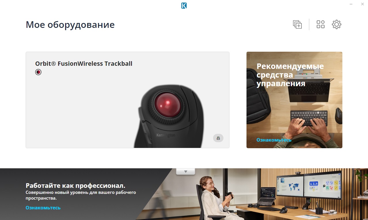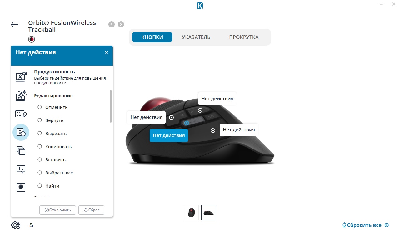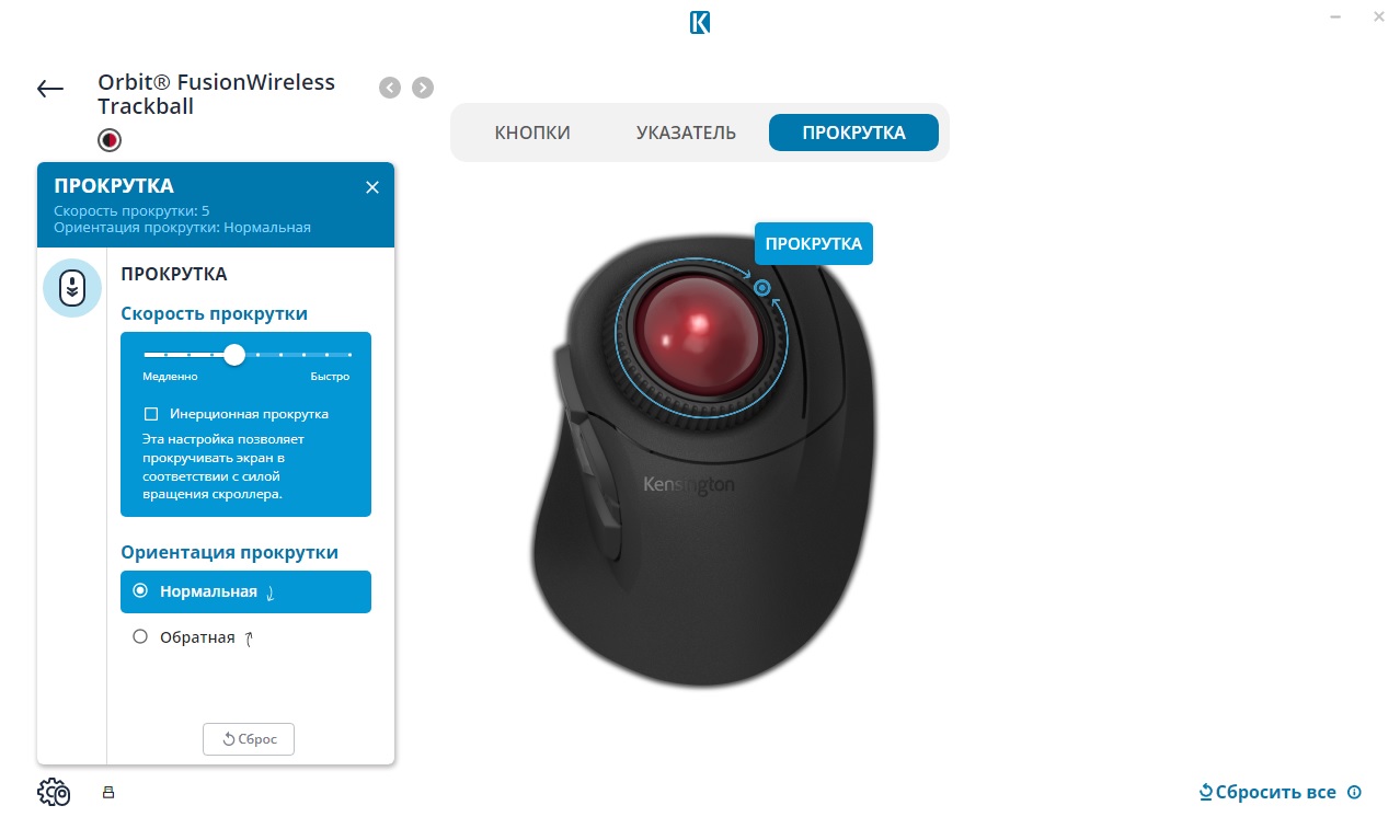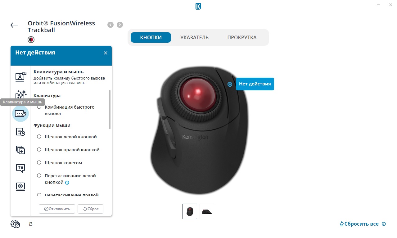 При этом существует необязательное к установке, но дающее широкие дополнительные возможности фирменное программное обеспечение Kensington Konnect (прим. автора – да, тут слово «connect» намеренно решили написать через «K») для ПК с актуальными версиями Windows и Mac OS. Оно позволяет перенастраивать функции клавиш трекбола, назначать на них макросы, гибко регулировать скорость перемещения курсора, прокрутки текста и т.д.