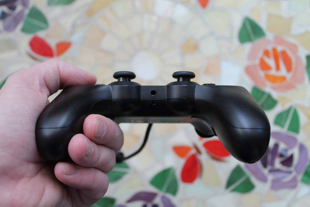 Вид на геймпад со стороны пользователя. Обратите внимание на 3,5 мм разъём для наушников