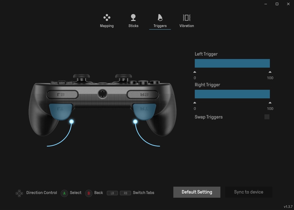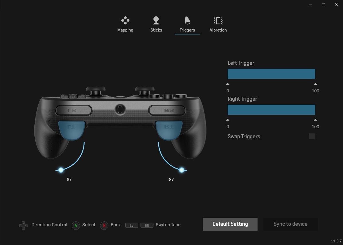 Физический ход курков немного меньше диапазона считываемых значений, из-за чего могут быть проблемы с управлением в некоторых играх, когда курок уже упирается в корпус геймпада, но его полное нажатие ещё не регистрируется. Проблема решается настройкой работы курков через фирменное ПО