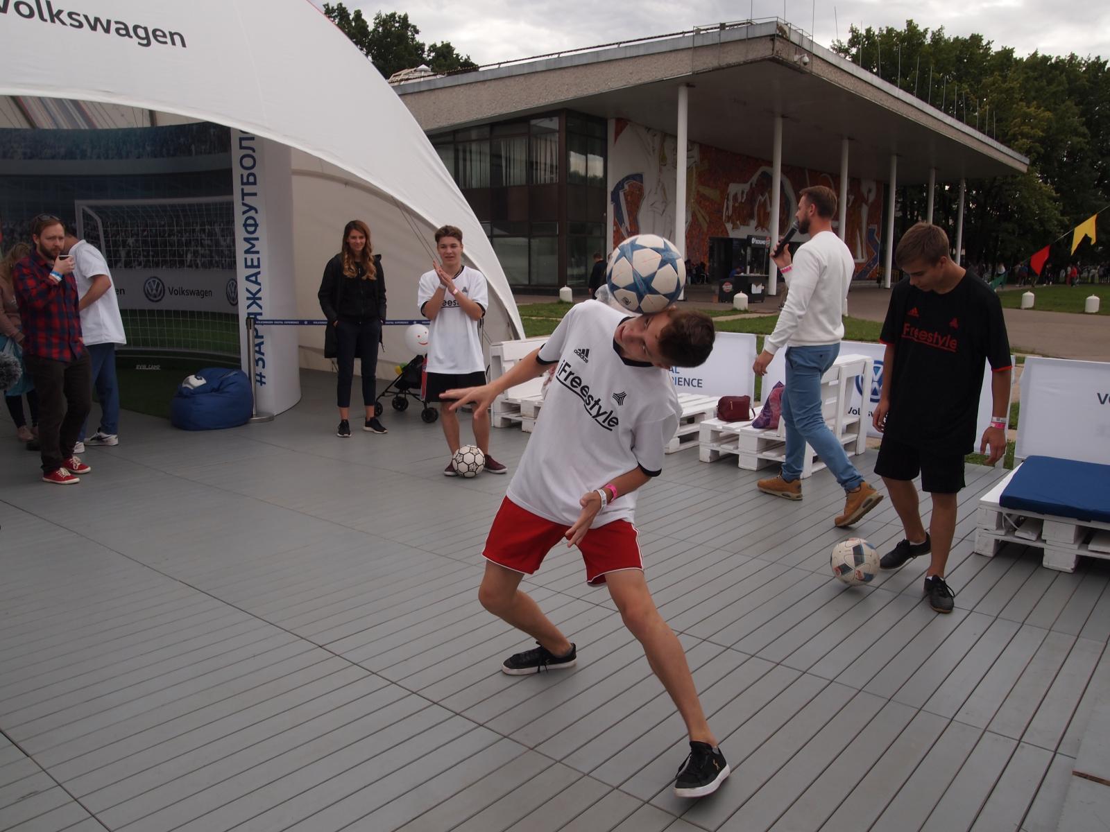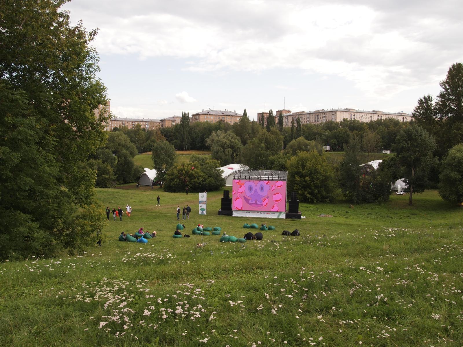 Сначала мне показалось, что площадка очень маленькая и компактная – но вскоре выяснилось, что на площади перед самим Дворцом пионеров расположилась лишь главная сцена фестиваля, игровая и турнирная зона Tele2 Mobile Open Cup 2019, экспозиция автоконцерна Volkswagen и «Норильского Никеля». В зоне Tele2 проходили финальные соревнования чемпионатов по дисциплинам PUBG Mobile, Hearth Stone и Clash Royale с солидными денежными призами – от 90 до 150 тысяч рублей за первое место в зависимости от дисциплины, при том, что всего призовых мест было не менее трёх в каждой дисциплине. Volkswagen представил актуальные модели внедорожников Tiguan, Touareg и Teramont, а так же зону виртуального тест-драйва с VR очками и водительскими креслами с имитацией перегрузок при ускорении и наклонах при спусках и подъемах виртуального авто в гору. Но большинство стендов фестиваля расположились небольшими скоплениями в обширной парковой зоне за Дворцом пионеров и главной сценой, среди островков леса, холмов и лужаек.