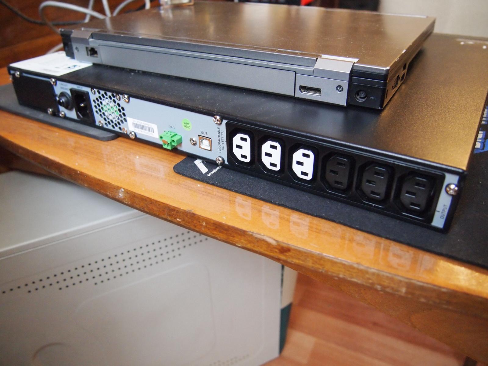 Имеется некоторая особенность конструкции, которую необходимо учитывать при эксплуатации: доступ к аккумуляторным батареям открывается посредством снятия левой части лицевой вентиляторной решетки, при том, конструкция крепления позволяет снять её легко. При переносе ИБП невольно берешься за неё, что может привести к произвольному отсоединению. Производитель наклеил наклейку рядом с этим местом, где указано, что брать за него при переноске не следует, однако наклейка не особо заметная, точнее говоря, на неё просто можно не обратить внимания.