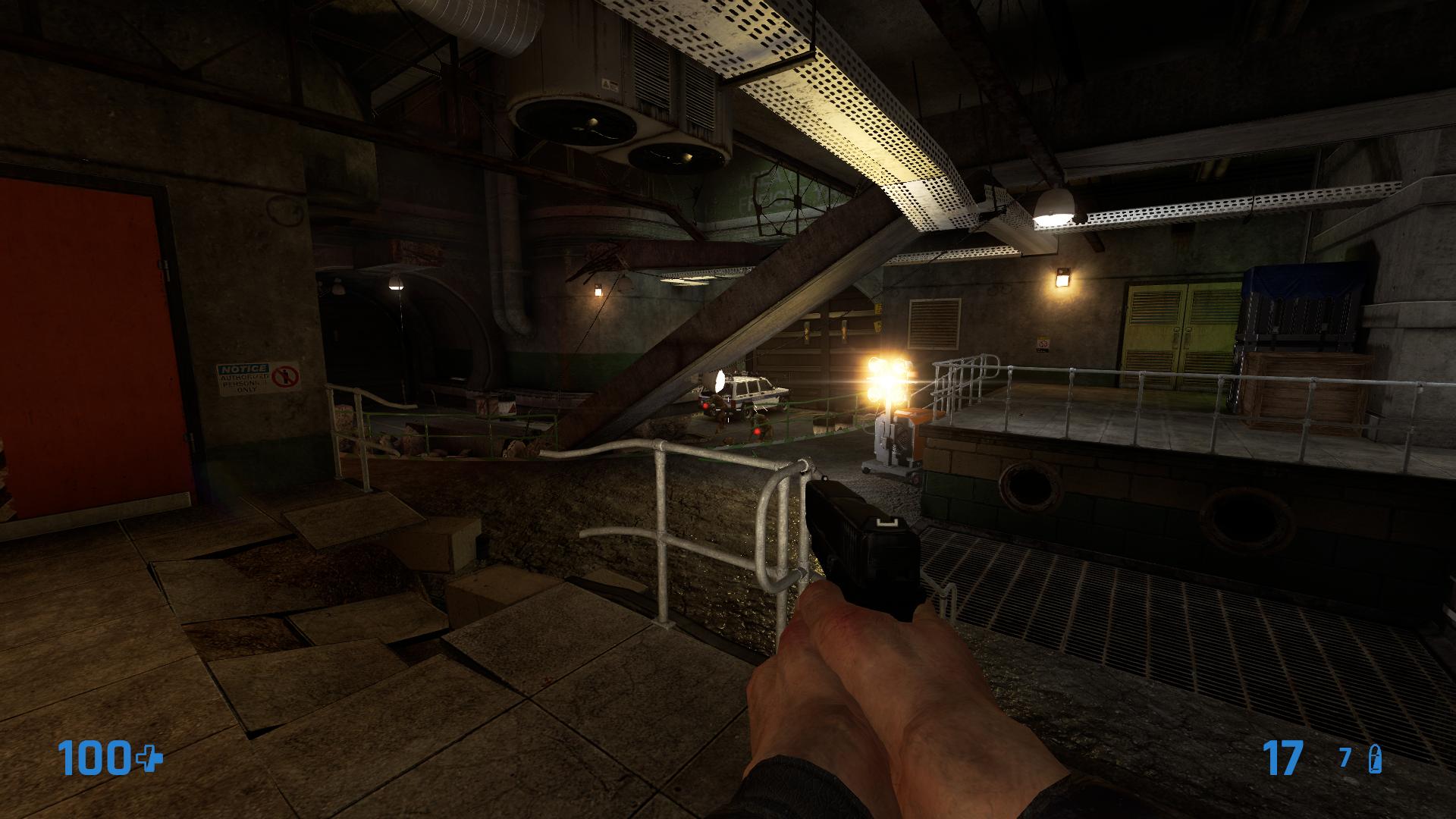 Естественно, будут и другие, не менее распространенные представители фауны Зена, а также зомбированные хедкрабами учёные и охранники (к слову, в оригинале зомби встречались небольшой кучкой лишь в одном месте), но все эти монстры достаточно медлительны или не настолько разумны, так что особой опасности представлять не будут. Если у вас есть нужное количество патронов, конечно, для их отстрела с безопасной дистанции. А вот с этим тут некоторый напряг. За это игру можно даже отнести к поджанру Survival Horror, пусть и без характерного для последних RPG элемента. Патроны тут на вес золота, никогда не знаешь, когда они могут пригодиться и будет ли возможность их найти где-то поблизости с местом боестолкновения на локации. Просто приведу пример. В одном месте главный герой попадёт в западню вида «арена с кучей врагов» в лице тех самых коварных и опасных вортигонтов. Перед нами закрывается решетка и в помещение телепортируется сразу полдюжины пришельцев. В принципе, решетку можно поднять и бежать дальше, но чтобы это сделать, надо долго и упорно крутить вентиль. А пришельцы в этот момент будут пытаться на нас напасть. Отстреливаться от них между делом не получится: только отпустили вентиль – и решётка тут же закрылась снова. Крутить надо до конца, пока она не поднимется полностью. Отстрелив всю живность, нас ждёт вторая волна спавна. Я, если честно, не знал, как проходить этот момент: то ли разработчики намекают на то, что полная зачистка помещения бессмысленна и за второй также будет и третья волна, но оказалось, что нет. На самой локации можно найти достаточно аптечек и немного патронов, но есть большое желание истратить последние, стреляя по коробкам и ящикам, да и просто от скуки, пока пытаешься решить головоломку с соединением проводами трансформаторов по соседству. К слову, даже вырвавшись с локации на минимуме здоровья и с кончившимся боезапасом, мы попадём в ранее посещённую область, где также патронов днём с огнём не сыщешь, а аптечки мы уже почти все подъели. И там нам предстоит пережить ещё пару стычек с монтировкой в руках и весьма пошатнувшимся здоровьем, благо уже не против толпы вортигонтов, а преимущественно один на один. Патроны придётся беречь всегда, иначе в некоторых местах придётся даже переигрывать значительную часть локации. Из-за этого в некотором плане даже проседает динамика геймплея. Надеюсь, что дефицит патронов исправят с последующими апдейтами.
