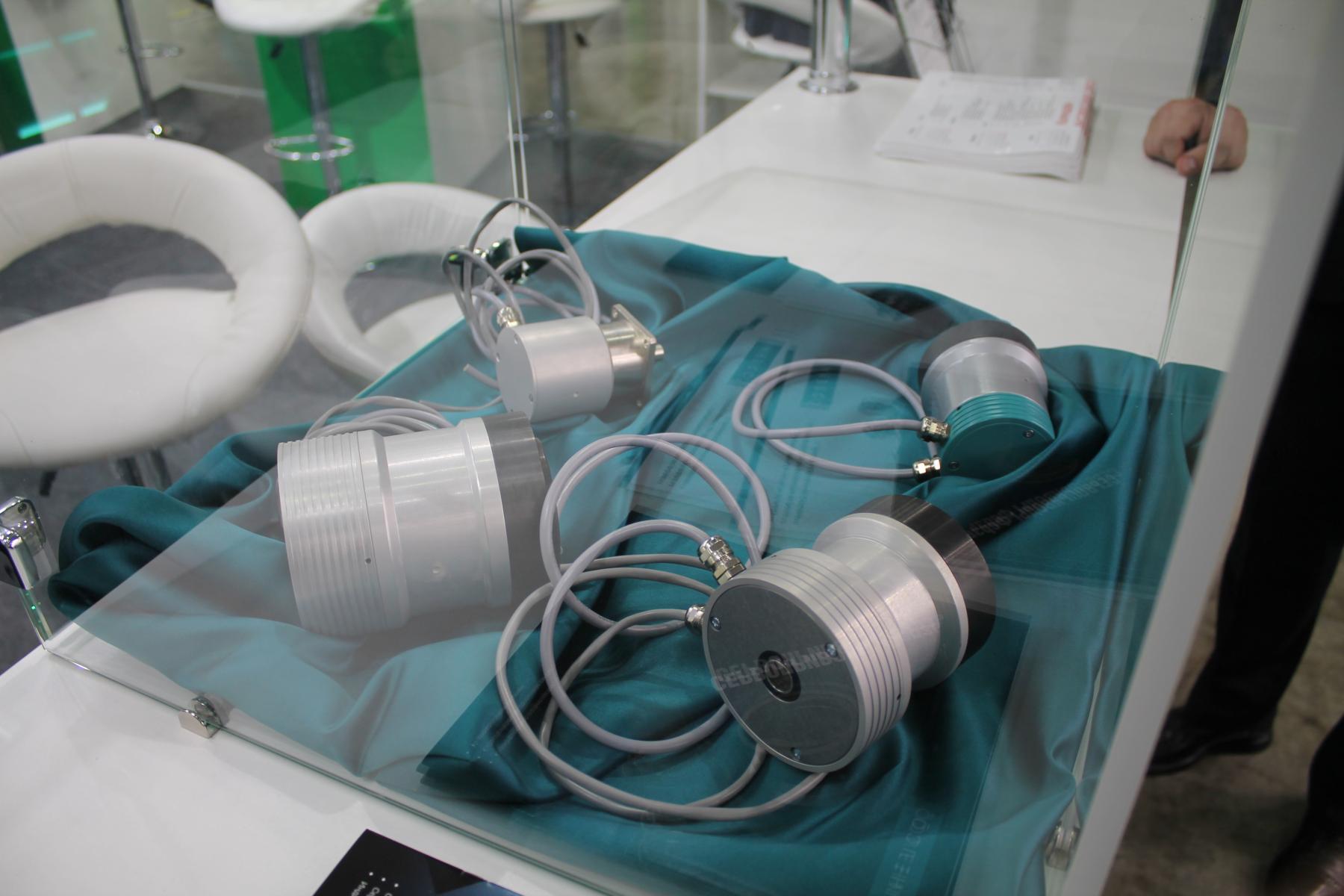 На расположенном неподалёку стенде компании “ИНЕЛСО” моё внимание привлекли несколько достаточно крупных и массивных на вид металлических цилиндров, закрытых стеклянной витриной. Как оказалось, это линейка сервоприводов “Ферзь” российского производства, оснащённых полыми и сплошными валами. Краем уха слышал, как представитель компании рассказывал собравшимся о том, что данные изделия просто не имеют аналогов по ряду параметров. Их конструктив и технические параметры были достаточно хорошо и подробно расписаны в лежащих рядом брошюрах. Я не специалист в этой теме, поэтому поверим на слово и идём дальше, не забыв взять информационные материалы для самостоятельного изучения на досуге.
