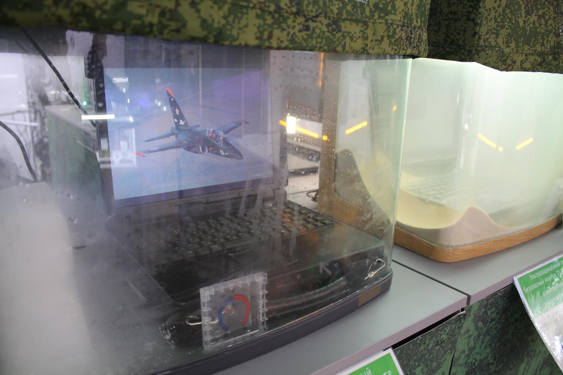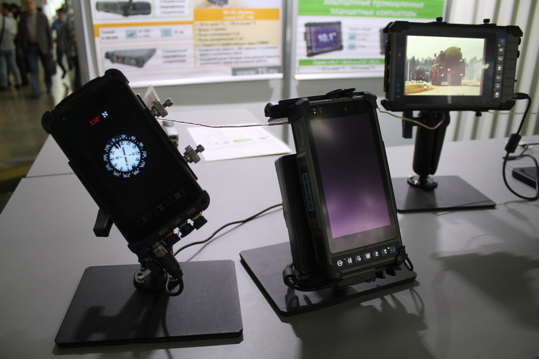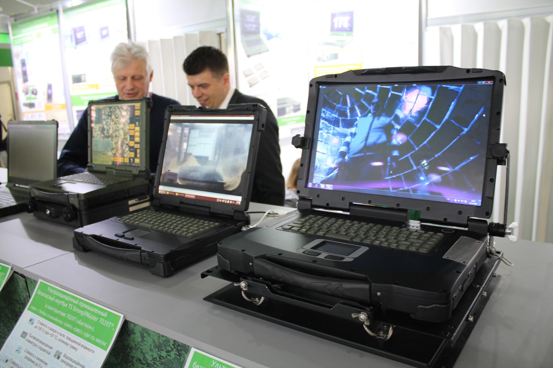 Время от времени можно было встретить готовые ноутбуки и смартфоны, но не пользовательского, а специализированного сегмента. Как правило - защищённые от ударов, воздействия высоких и низких температур, влаги и пыли. Некоторые из представленных образцов НПО “Техника-Сервис” непосредственно находились в камерах, имитирующих экстремальные условия эксплуатации, включая песчаную бурю при сильной жаре, попадание воды в атмосфере повышенной влажности и работу при сильно отрицательных температурах. Такая продукция ориентирована на военных, полярников, нефтяников и так далее.