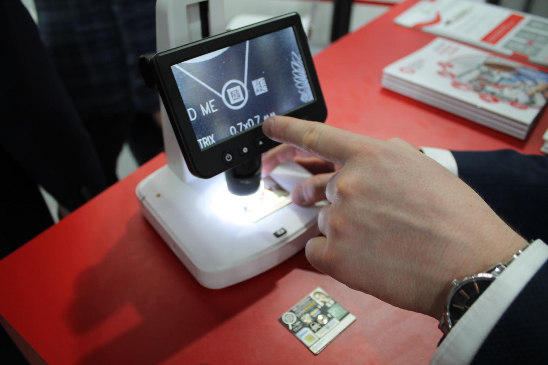 Также Васильев рассказал и о повышении скорости работы некоторых специализированных разработок компании, предназначенных для пищевых конвейерных линий. Цель звучит очень просто - наносить QR и штрих-коды на упаковку, но делать это надо предельно быстро. Так, со своего телефона Олег показал мне несколько видеозаписей с российских производств, где на крышки бутылок с минеральной водой, буквально летящих по конвейеру, к которому, судя по всему, сходилось несколько производственных линий, наносились QR. Само собой, сделать это контактным способом, при этом не сбавляя скорости работы данной линии, было практически нереально. Подобная технология была внедрена и на производственную линию известных своим высоким качеством глазированных сырков Б.Ю. Александрова.