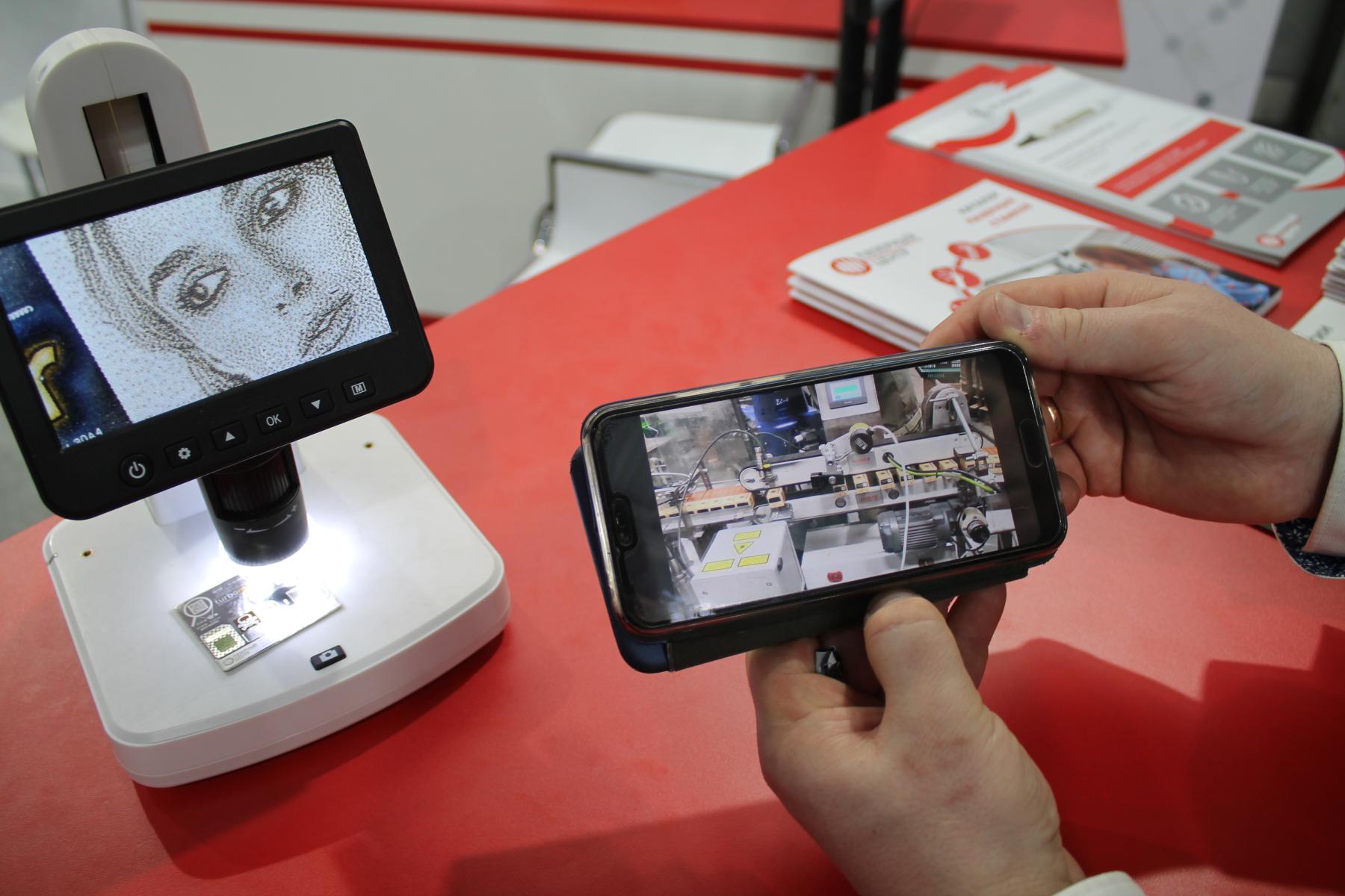Мне удалось поговорить с Олегом Васильевым, кандидатом технических наук, занимающим должность руководителя отдела поддержки и технологий в компании “Лазерный Центр” и задать ему ряд вопросов. Так, за прошедшие годы удалось достичь ещё более впечатляющих результатов по точности нанесения изображения лазером небольшого станка для маркировки и гравировки Turbomarker. Чёрно-белые фотографии с тестового образца в виде небольшой полированной пластинки выглядят весьма достойно даже под сильным увеличением, стала возможной перфорация, по точности и размеру близкая к той, которая служит элементом защиты от подделок на некоторых купюрах, надписи микро-шрифтом, которые также могут служить элементом защиты от подделок и при взгляде невооружённым глазом представляют из себя практически ровную линию с небольшими едва заметными разрывами в местах пробелов между слов. Также появилась возможность нанесения лазером скрытой информации, например, QR-кода, просто не различимого невооруженным глазом, но появляющегося только при определённом освещении. И всё это делает один и тот же станок весьма небольших размеров, примерно сопоставимых с доступными энтузиастам лазерными принтерами! Само собой, стандартные для такой техники возможности по гравировке и нанесению изображений на металл находят очень широкое применение во многих областях.