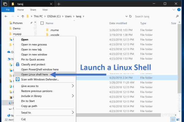 Запустить оболочку Linux теперь можно непосредственно из File Explorer, используя контекстное меню. Кроме того, разработчики добавили в консоль возможность копировать/вставить, а также ряд других улучшений.
