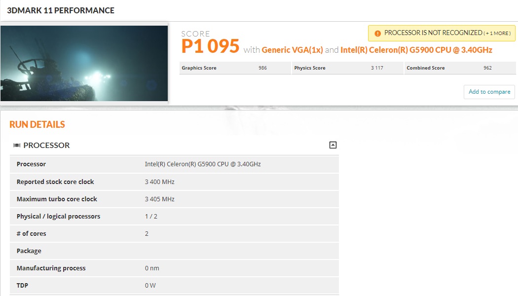 Уже совсем скоро компания Intel явит миру 10-ое поколение своих настольных процессоров семейства Comet Lake-S, поэтому появление ряда новинок в нескольких бенчмарках не вызывает особого удивления — в течение нескольких недель широкая компьютерная общественность могла обсуждать результаты моделей линеек Core i3, i5 и i9, а сегодня, благодаря «сетевому детективу» _rogame, в сети появилась информация касательно достижений одной из моделей Celeron в популярном тесте 3DMark 11 Performance.