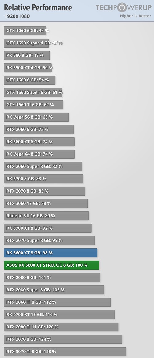 Несмотря на то, что графический адаптер AMD Radeon RX 6600 XT был анонсирован пару недель назад, запрет на публикацию материалов, посвящённых новинке, пал только сегодня, благодаря чему сеть наводнило великое множество обзоров от ряда ресурсов: не остались в стороне и специалисты сайта TechPowerUp, которые изучили возможности одной из новых моделей, а именно Radeon RX 6600 XT STRIX OC производства ASUS.