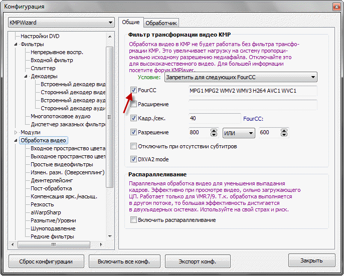 Настройка DXVA в KMPlayer.