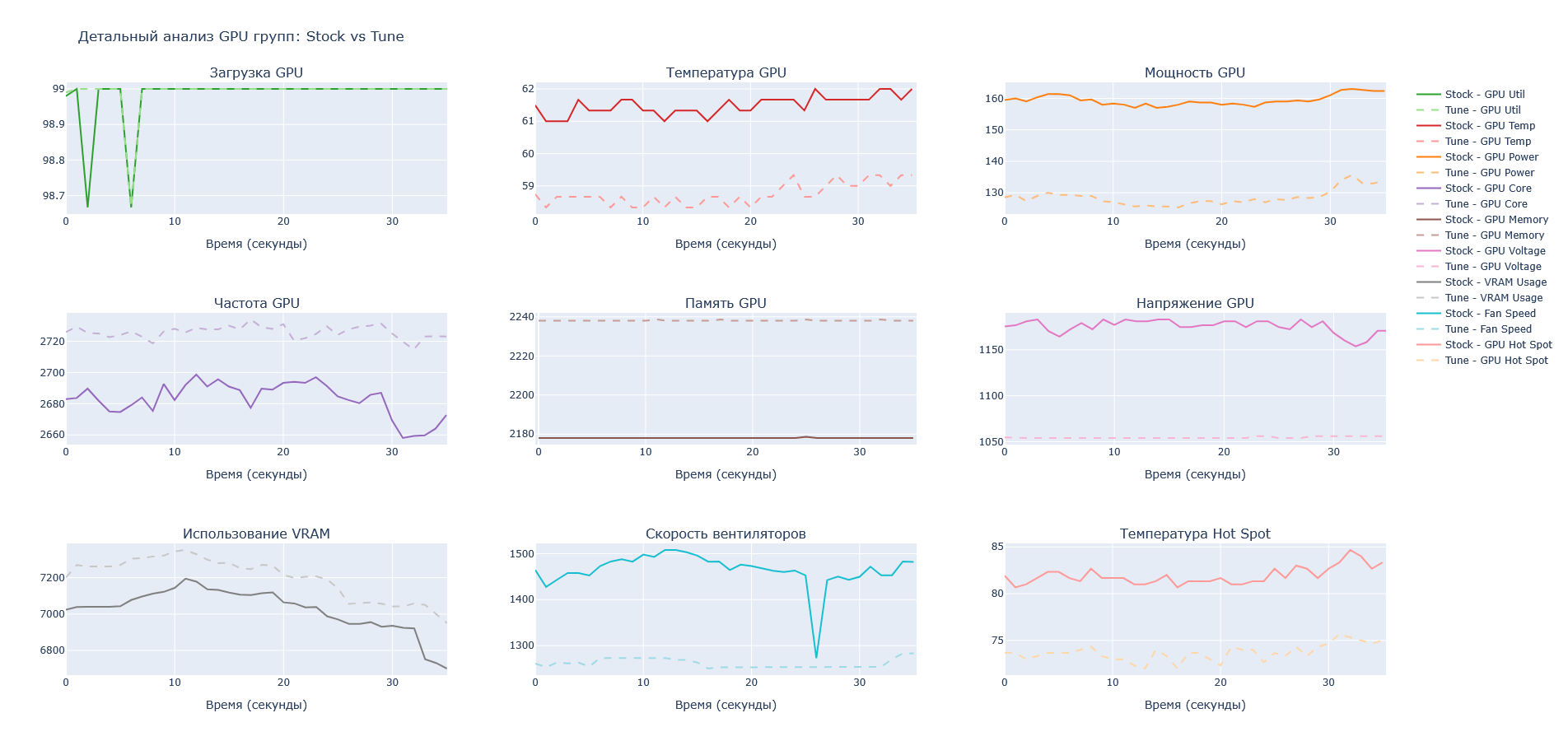 Графики сравнения показателей GPU на тестовом отрезке
