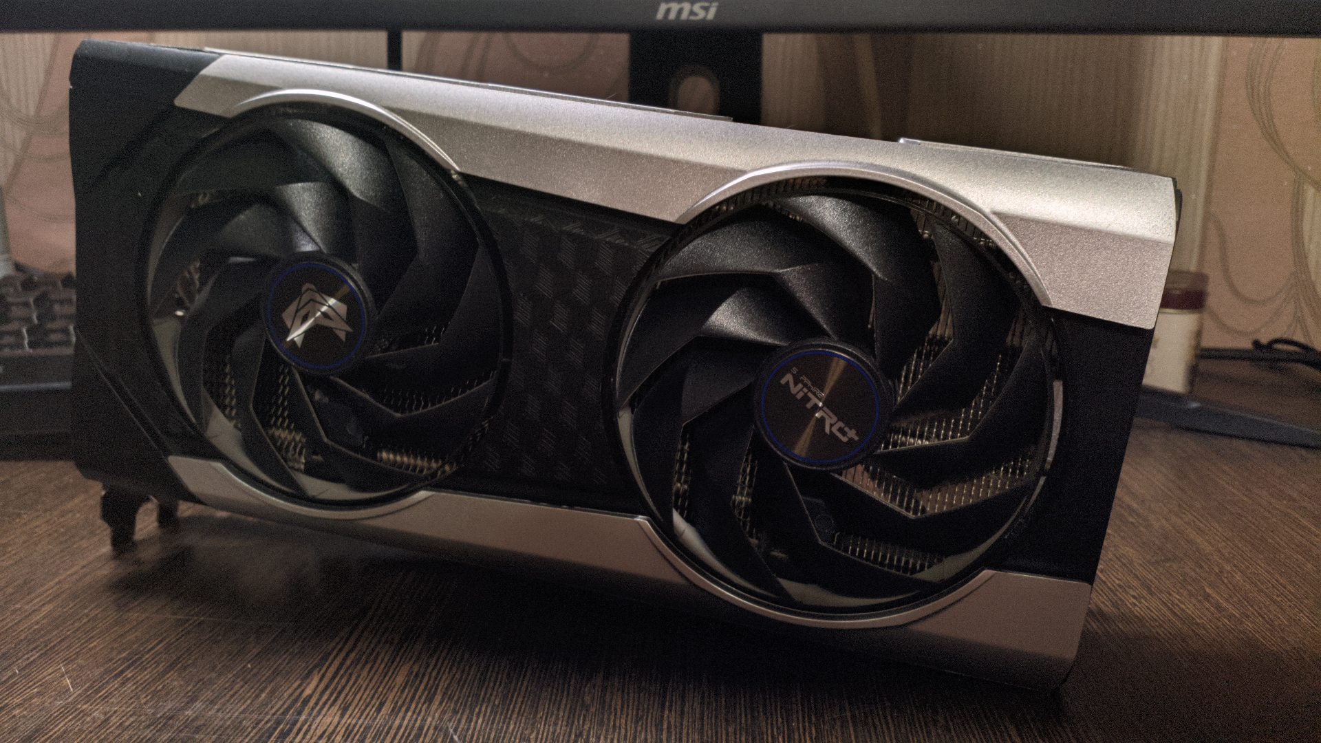 Немного слов об исполнении, которое я приобрёл — Sapphire Nitro+. Внешний вид, хотя и является вкусовщиной, но на мой, сугубо личный взгляд — удачный. Выглядит симпатично, интересно, при этом не вычурно.