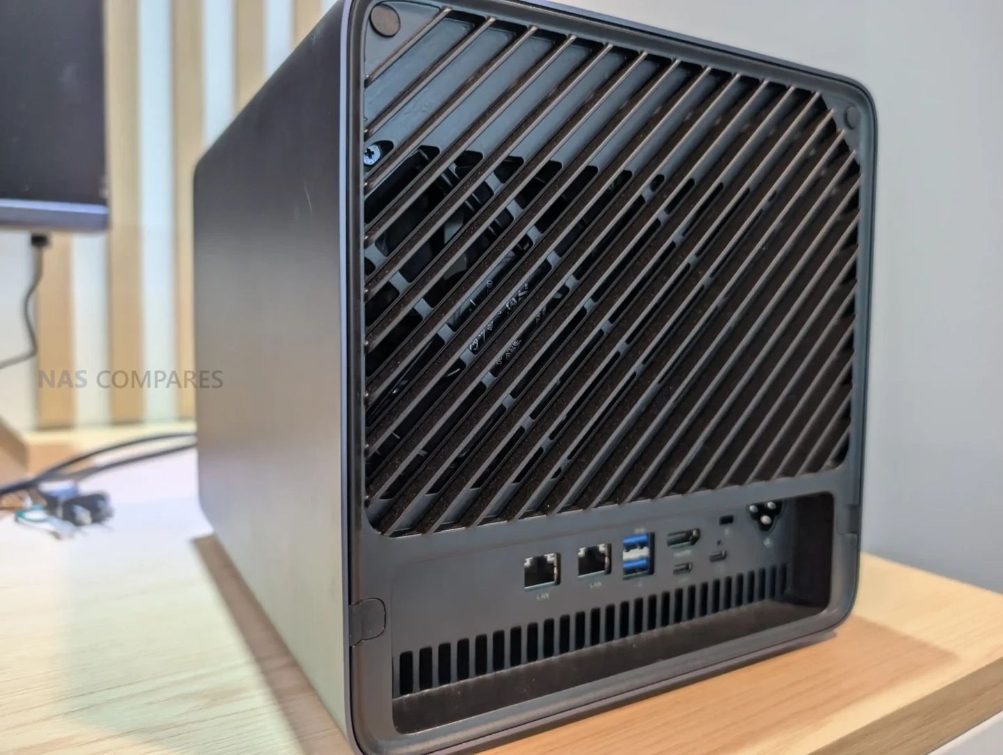 Ключевой особенностью N5 Air стала гибкость в работе с твердотельными накопителями: устройство поддерживает установку дисков форматов U.2 и M.2 (2280/22110) объемом до 15 ТБ, при этом один из слотов работает в режиме PCIe 4.0 x2. Основная дисковая подсистема включает пять отсеков для накопителей SATA 3,5/2,5 дюйма с поддержкой дисков объемом до 22 ТБ на каждый слот. В отличие от флагманской версии N5 MAX с распаянной памятью, модель Air оснащена двумя слотами для модулей DDR5-5600 (без поддержки ECC) с возможностью расширения до 96 ГБ.