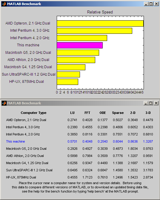Встроенный бенчмарк MATLAB Version 7.1.0.246 (R14) Service Pack 3:
