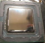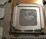 Поняв, что произошло, первая мысль была: "Где купить холодную сварку?" (А тему на форуме про срезанные крышки процессоров я читал). Вернуть крышку на место придется и потому, что она имеет вполне осязаемую толщину, заменить которую шматом термопасты будет не лучшей идеей. Кроме того, размеры кристалла с подложкой недвусмысленно намекают, что прогиб текстолита смерти подобен из-за отвала пайки. И это не худший вариант, прогрев еще может оживить такую карту.