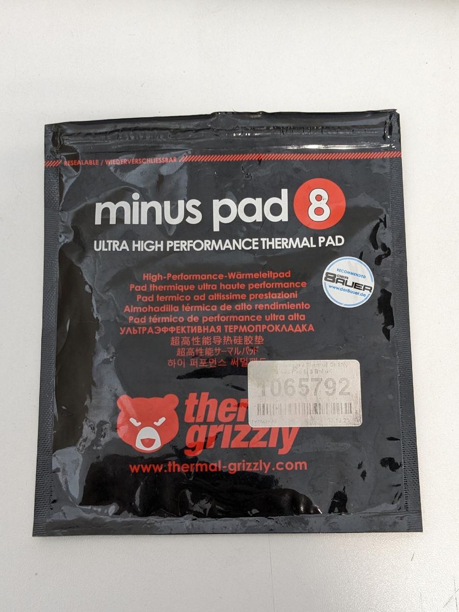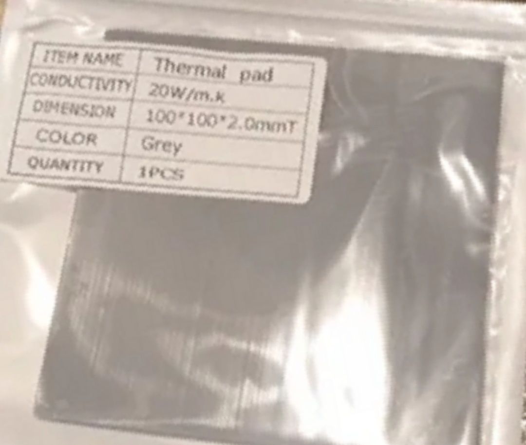 Теплопроводность 8Вт/мК, размер термопрокладки 100х100мм, хватит с запасом. Твёрдость 60 HS OO, по ощущениям термопрокладка мягкая.