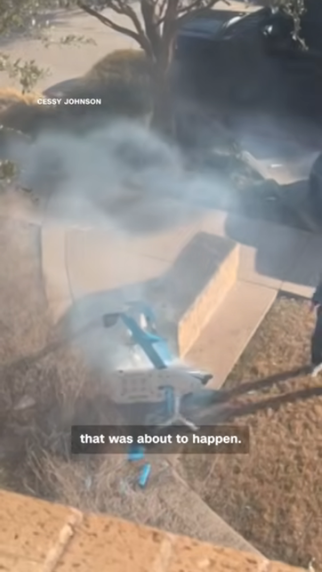 Источник: скриншот с канала CNNНа видео видно, как дрон зависает рядом со зданием, а затем исчезает из виду. Затем слышен громкий шум, и части пропеллера падают на землю. Повреждения здания считаются незначительными, но сам дрон вряд ли сможет снова летать. По данным CBS News, Amazon официально извинилась за неудобства и пообещала провести расследование.