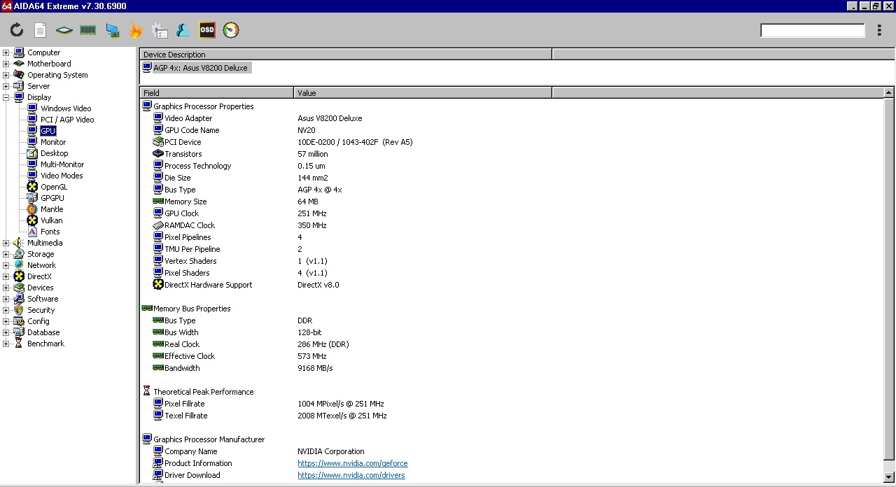 При тестировании будут использоваться разные версии драйверов для разных операционных систем. В среде Windows 98 SE предустановлен только DirectX 8.1 и используется один из последних драйверов перед выходом линейки Geforce FX. В среде Windows XP установлен самый последний драйвер с поддержкой графической архитектуры Geforce 2/3/4.