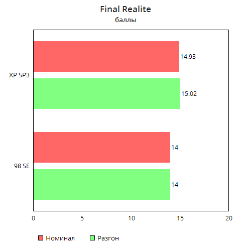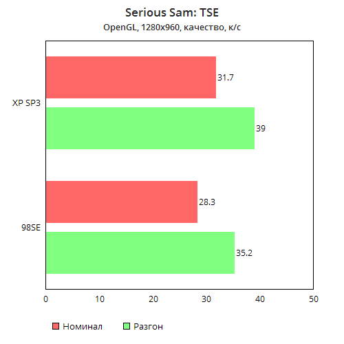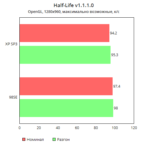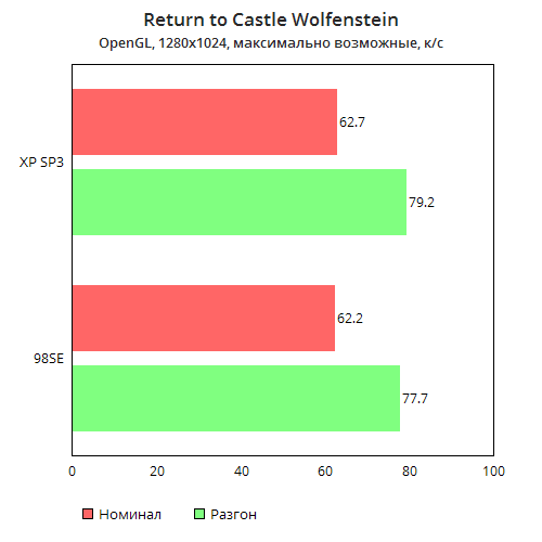 В данном игровом тесте мы упираемся в потолок в 100 кадров заложенном в движке игры. С одной стороны Windows 98 SE со старым драйвером работает быстрее. С другой же стороны понять "насколько" не представляется возможным из-за программного ограничения.