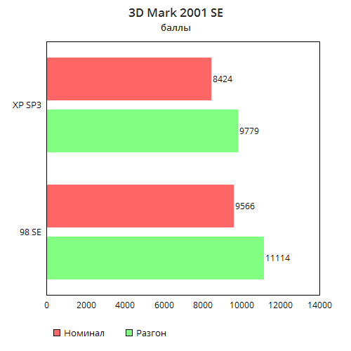 Тестирование в 3D играх показало, что прирост от разгона видеокарты составил в среднем 24%. При этом игры вышедшие до 2000-х годов явно лучше и быстрее работают в старой ОС со старым драйвером. Стоит только пересечь рубеж миллениума, как пальму первенства уверенно начинает забирать более поздний драйвер и более свежая ОС.