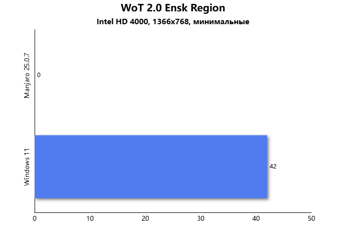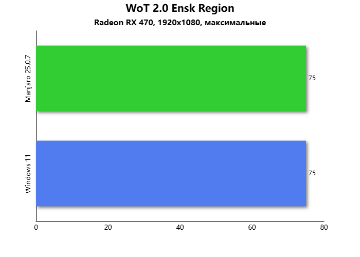 Данную конфигурацию уже сложно относить к игровым, так как современные игры все чаще и чаще требуют набора инструкций AVX2 у процессора, чем данный не располагает. А так же на рынке уже вовсю используется оперативная память стандарта DDR5 и видеокарты с поддержкой DXR и трассировки пути. Но так как мы тестируем сетевую игру, графический движок которой с текущим обновлением не получил глобальных изменений, то текущая конфигурация до сих пор поддерживается разработчиками игры и позволяет комфортно играть в неё даже на ультра настройках в FHD разрешении. Обе операционные системы настроены для оптимального уровня быстродействия. В Windows 11 отключены автообновления, защитник и сборщик телеметрии, а также отключены защиты от Meltdown и Spectre. В Manjaro отключены всевозможные защиты от процессорных уязвимостей и отключена прозрачность интерфейса для меньшего жора видеопамяти.