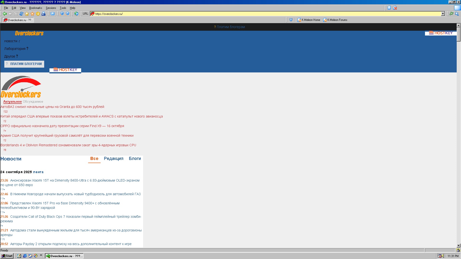 Как и в предыдущем материале прикрепляю скриншот того, как выглядит "overclockers.ru" в среде Windows 98SE при использовании форка браузера K-Melion с поддержкой TLS1.3 от roytam1. Форки браузеров для Windows 98 без проблем отображают лишь сайты написанные на HTML 1.
