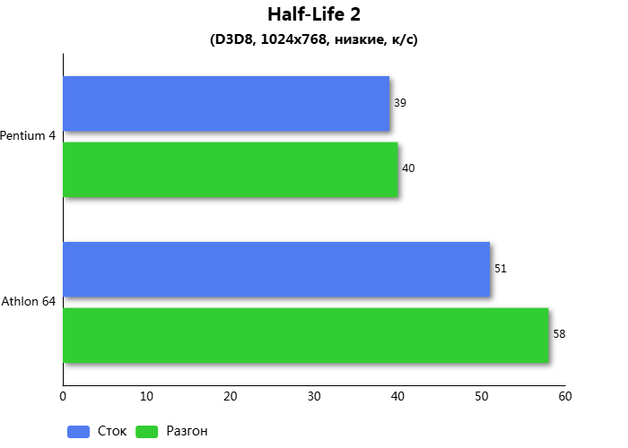 В игре Half-Life 2 комплект с Athlon 64 показывает результат на 45% быстрее.