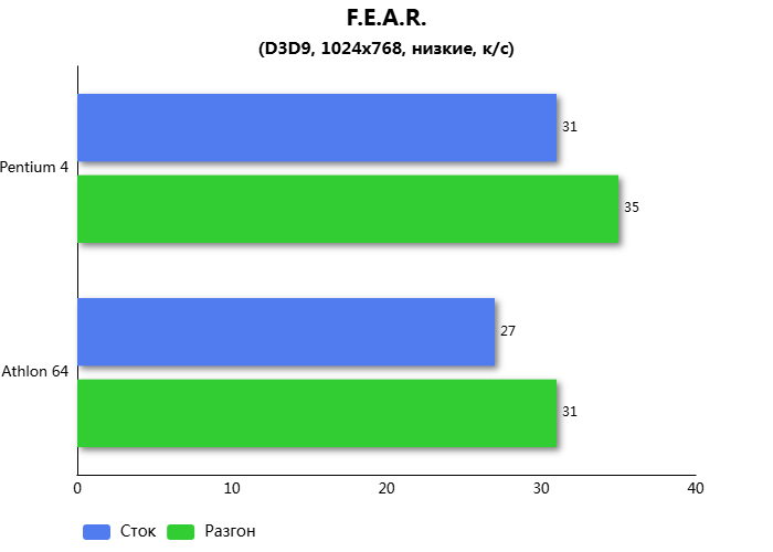 F.E.A.R. быстрее работает на процессоре Pentium 4 и позволяет ему отыграть 14% производительности у Athlon 64.