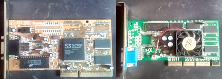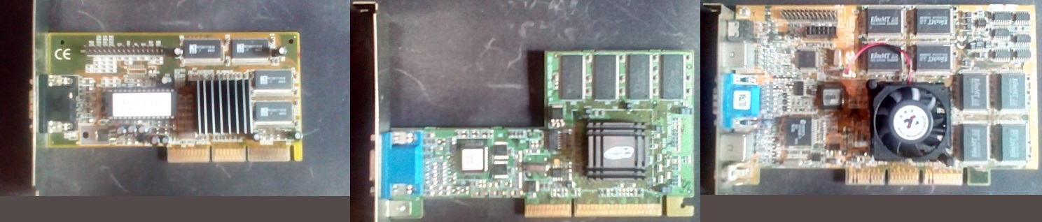 Фото S3 Savage 4 на 8 МБ и ATI Rage 128 Pro 16 Мб и Riva TNT 2 Ultra на 32 Мб
